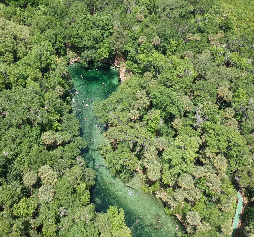 In the winter months, a first magnitude spring like this is refuge to hundreds of Florida’s beloved, threatened sea cows. Manatees from the St John’s river travel to the spring to bask in the steady 72-degree water. Cold, but warmer than the surrounding river or ocean from November to April. Four hundred and eighty-five individuals were observed at Blue Spring in the 2018 winter season, making this a very important area of refuge for the species.